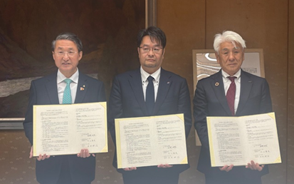 とっとり都市木造推進協議会、鳥取県、鳥取県森林組合連合会の3者で「都市木造鳥取モデルの推進に係る建築物木材利用促進協定」を締結しました。